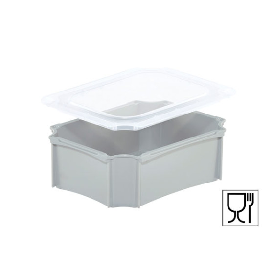 Der transparente Klickdeckel liegt fest auf den Einsatzbehältern auf. Erst ist stapelbar, das heißt, Behälter, die auf den Deckel gestapelt werden, verrutschen nicht.