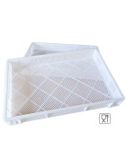 Stabiler und stapelbarer Kunststoffbehälter, der optimale Nudeltrockner. An den Seiten und dem Boden durchbrochen. Perfekt für die Lagerung von Süßwaren oder die Trocknung von Nudeln, Obst und Kräuter.