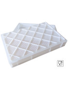 Stabiler und stapelbarer Kunststoffbehälter, der optimale Nudeltrockner. An den Seiten und dem Boden durchbrochen. Perfekt für die Lagerung von Süßwaren oder die Trocknung von Nudeln, Obst und Kräuter.