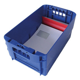 Postkisten können aufeinander und ineinander gestapelt werden. Postkisten zum Transportieren für Briefe, Schriftstücke und viele andere Artikel. Höhe 21 cm. Sicherung durch Kunststoffsteckplomben möglich.